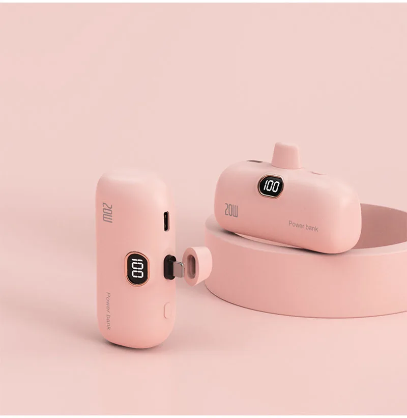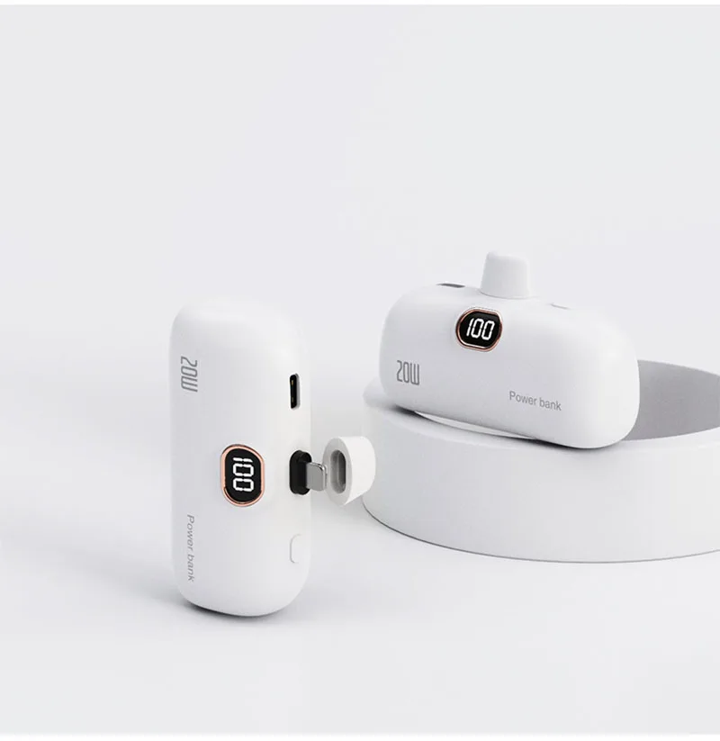 Portable Mobile Charger Mini Power Bank Built Cable Fast Charger Spare Battery Capsule Power bank 2000/5000mAh For iPhone Type-C